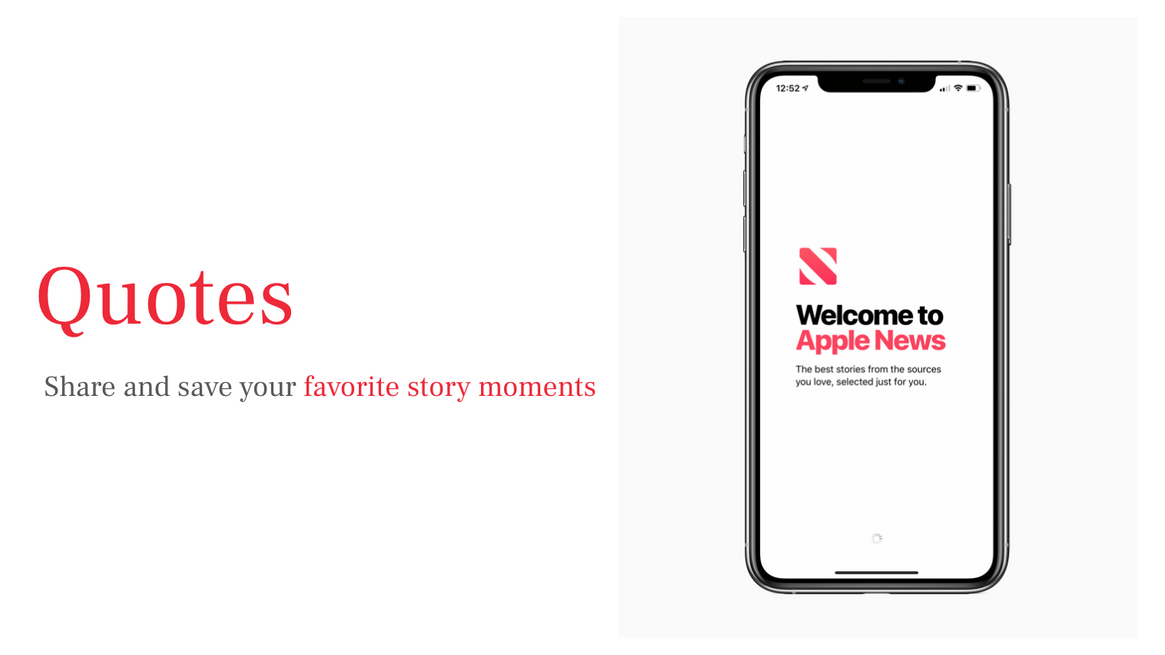 Quotes gives Apple users the ability to share and save content in new ways. Harnessing the power of personalization, this product feature has a built-in feedback loop; the more a user saves, the more we understand what types of content that user finds valuable and the better recommendations we can surface.